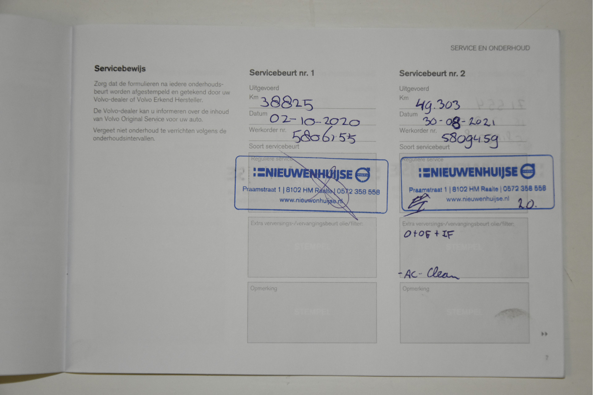 - Onderhoudsboekje aanwezig?