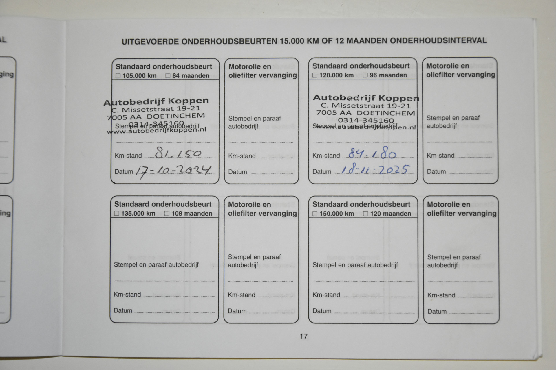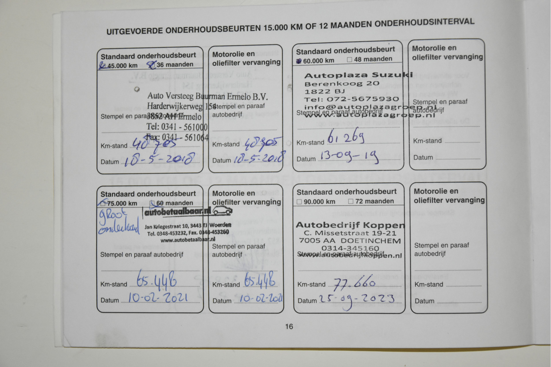 - Onderhoudsboekje aanwezig?